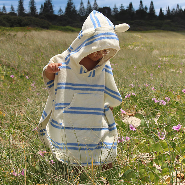 A 100% cotton bath poncho, ideal for wrapping up after swimming: