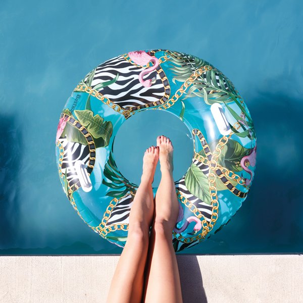 Une bouée de piscine au look sauvage et au motif tendance :