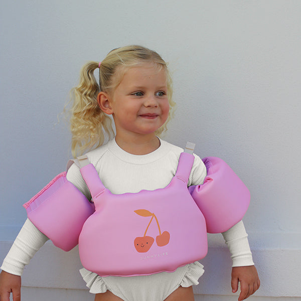 2 en 1, découvrez ce ce combiné brassards ceinture. Cette aide à la flottaison maintien l'enfant en position verticale dans l'eau. Il rassure ainsi l'enfant lors de ses premières baignades. Un brassards ceinture au design ludique.