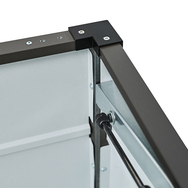 Le coffre Tutto offre une construction robuste en tôle d’acier galvanisé recouvert d'un vernis de qualité. Ce coffre de rangement extérieur est parfaitement ajustable selon le niveau du sol grâce à ses pieds réglables. Ce rangement extérieur offre une grande résistance aux UV et aux intempéries, il est étanche à l’eau de pluie.