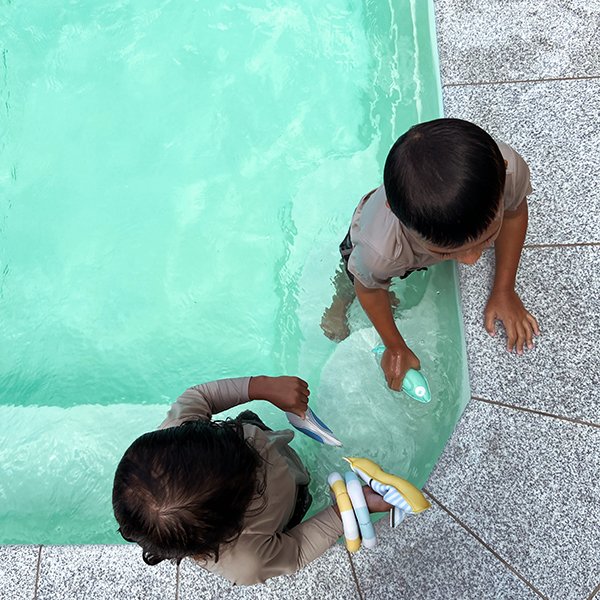 • Il est conseillé, une fois la baignade terminée, de ne pas laisser le jeu de plongée Pool dans l’eau après leur utilisation, cela pourrait les endommager.