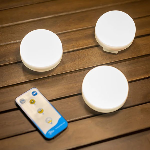100% nomade, ces éclairages LED offrent une intensité lumineuse de 350 lumens chacune, idéal pour illuminer vos repas. le petit plus ? Elles sont totalement pilotable à distance grâce à la télécommande fournie.
